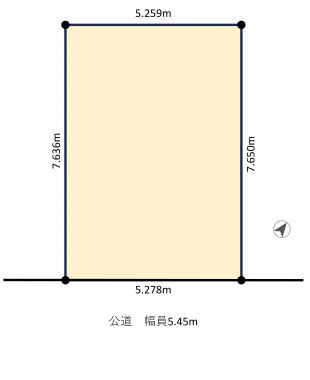 | 接道/セットバック | 南東側5.45m公道に5.28m接道 / 南西側2.70m私道に7.64m接道 / - - |