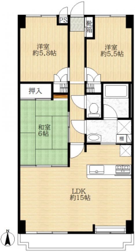 | 間取内訳/間取備考 | 和6.0帖 / 洋5.8帖 / 洋5.5帖 / LDK15.5帖/ |