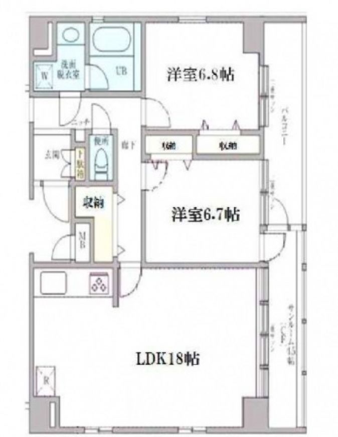 | 間取内訳/間取備考 | 洋6.7帖 / 洋6.8帖 / LDK18.0帖/ |