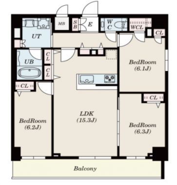 | 間取内訳/間取備考 | 洋6.3帖 / 洋6.2帖 / 洋6.1帖 / LDK15.3帖/ |