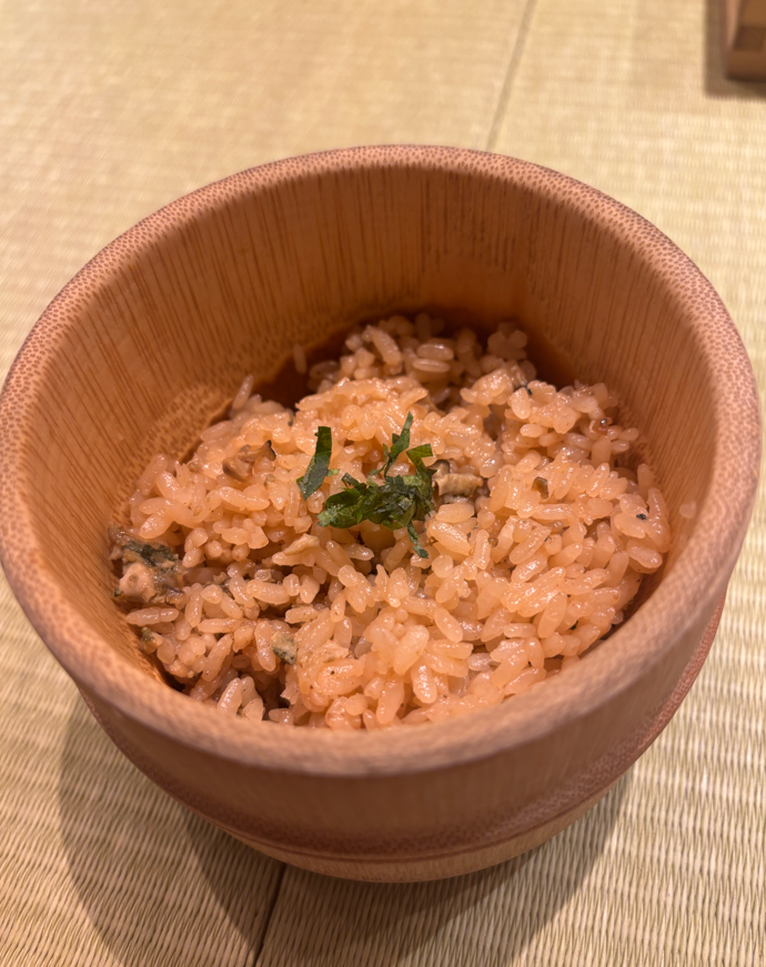 牡蠣ご飯(小)も、サイズ以上に牡蠣の存在感があり、そのままでも十分美味しいのですが、途中でらぁ麺のスープをかけていただくと、さらに旨味が増して絶品でした。らぁ麺との相性も非常に良く、セットで注文して正解だったと感じます。