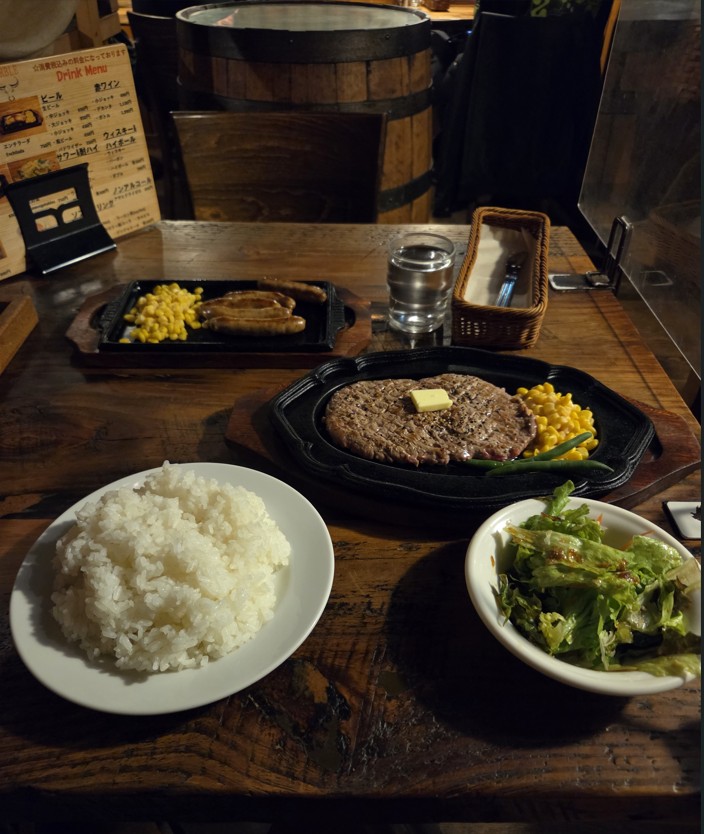 私はステーキ300Gセットのライス大盛、別でチョリソーも注文(食べすぎか・・・?)
