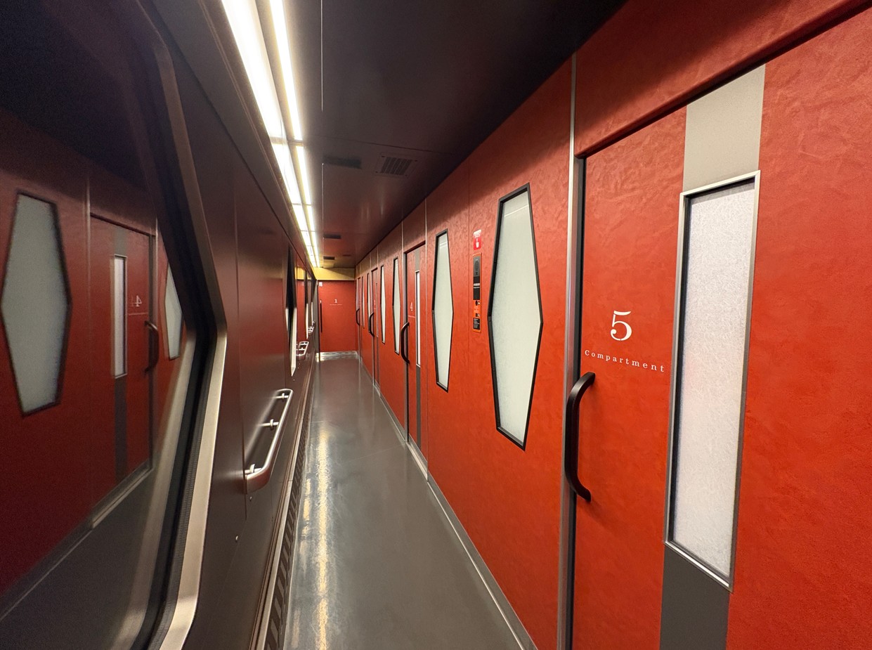 今回は贅沢に個室(コンパートメント)を予約しました。プライベートな空間で、家族や友人と気兼ねなく過ごせるのが魅力です。