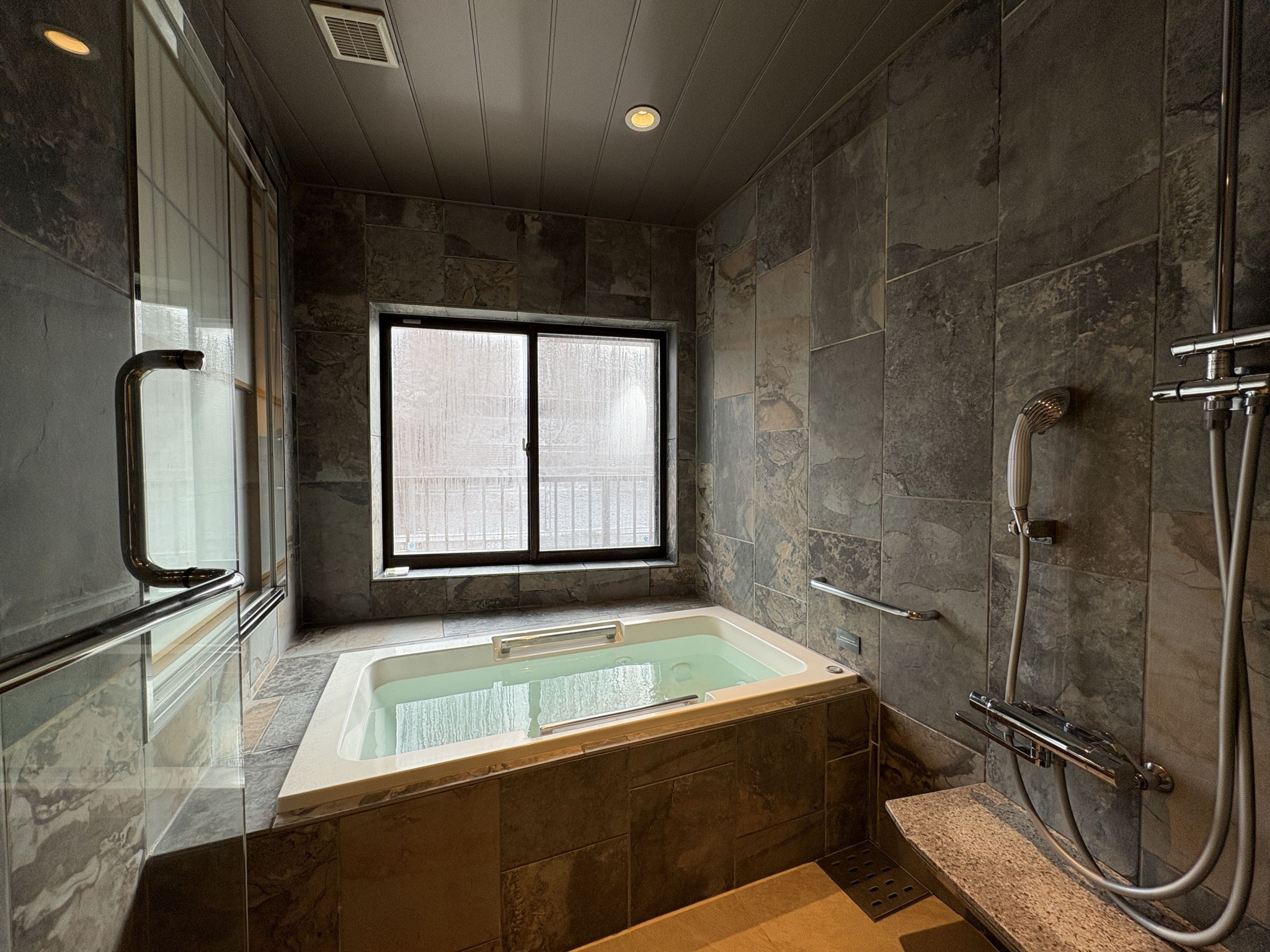 予約したのは、「眺望風呂付 リラックス和洋室」です。お部屋に備え付けのお風呂から景色を眺めながら入る温泉は格別で、日頃の仕事の疲れが吹き飛ぶような贅沢な時間でした。